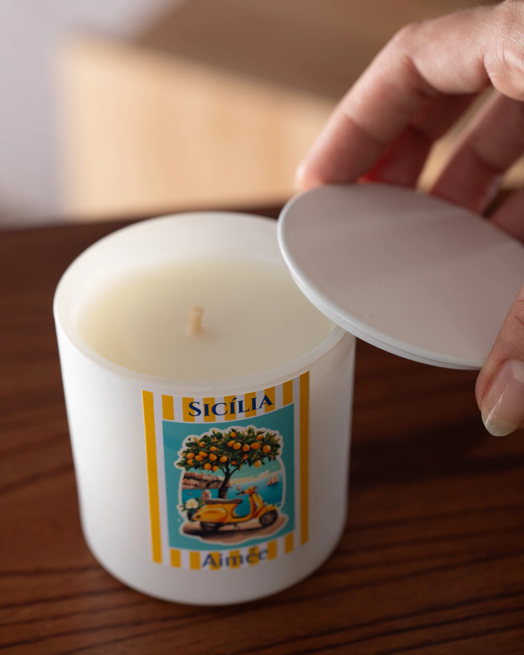 Uma edição super limitada Inspirada na elegância solar da costa mediterrânea, a vela Sicília combina o frescor vibrante do limão siciliano com o toque herbal e sofisticado do alecrim. Um perfume rico em camadas que se espalha no ambiente feito raio de sol.